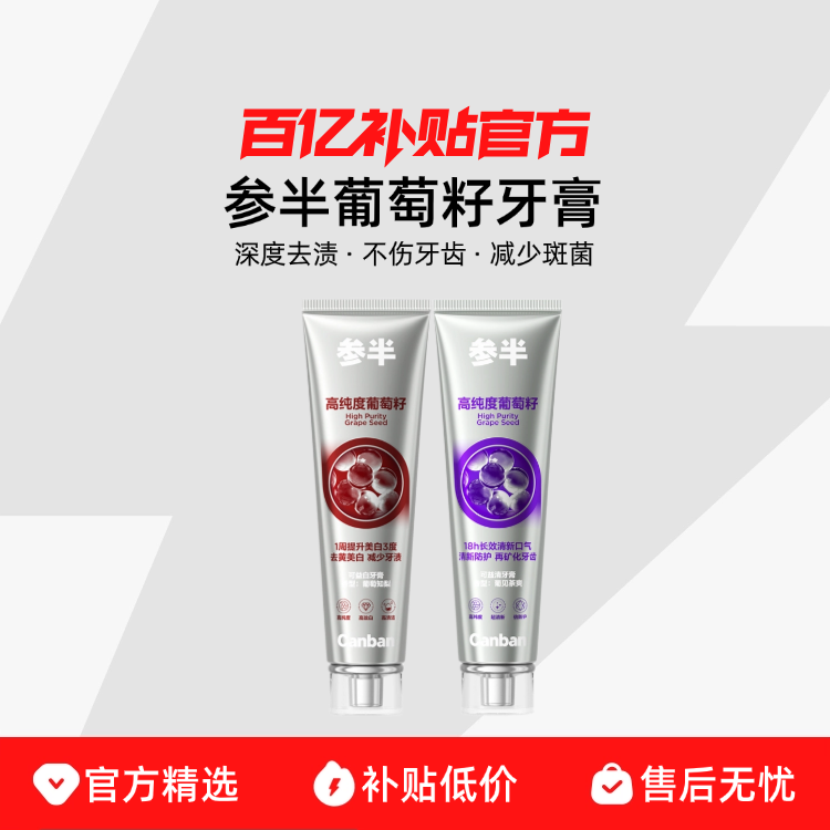 【新品上市】参半葡萄籽牙膏美白长效清新口气亮白牙齿清洁旗舰店