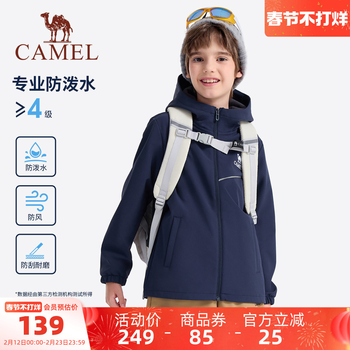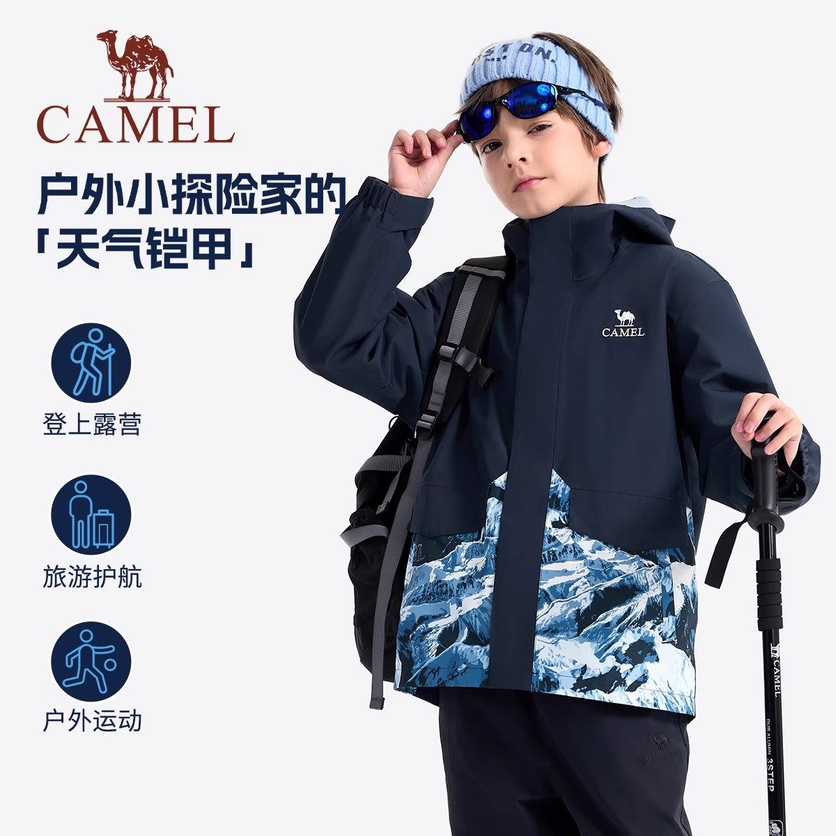 小骆驼儿童冲锋衣2026新款秋冬款防水学生户外登山服男童风衣外套
