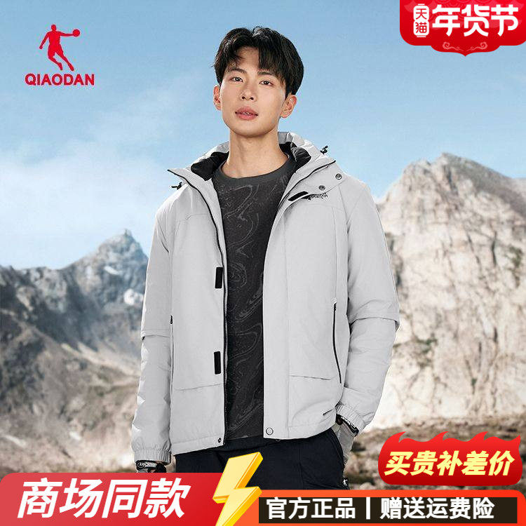 乔丹梭织厚外套男2025秋冬新款连帽学生加绒保暖防风宽松运动风衣