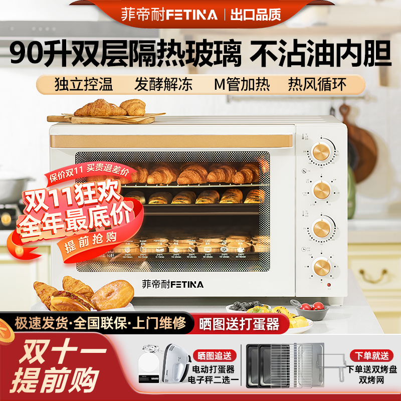 菲帝耐电烤箱商用大容量90L升家用私房烘焙全自动多功能热风炉