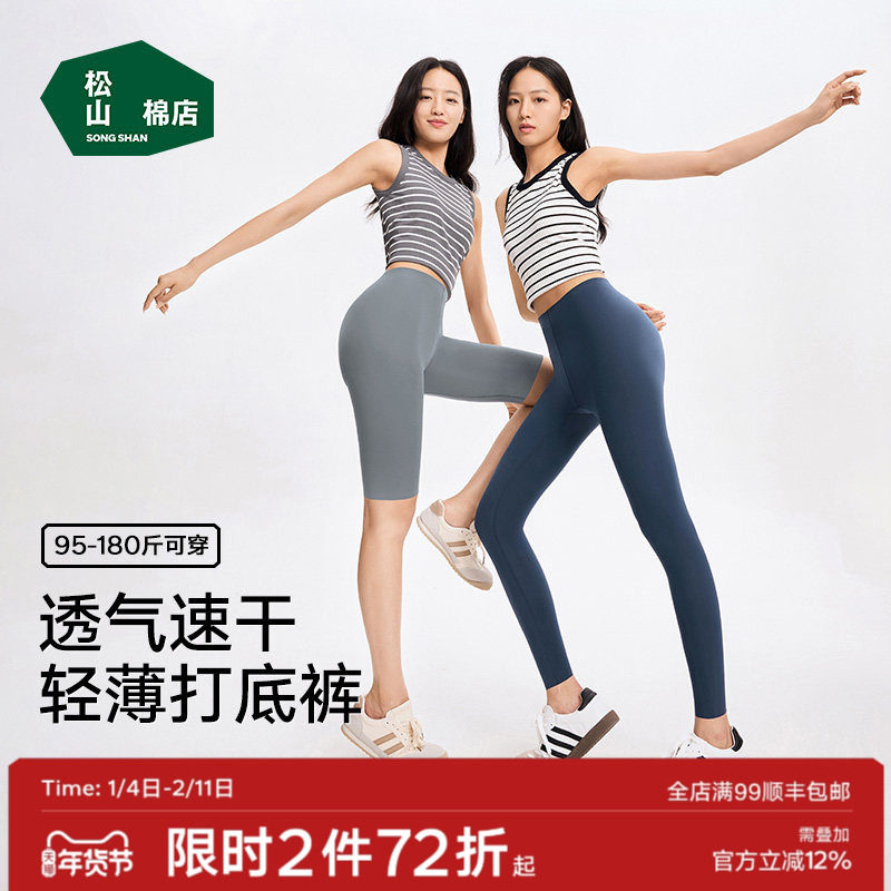 松山棉店女士打底裤五分九分高弹运动春秋透气物理防晒外穿瑜伽裤