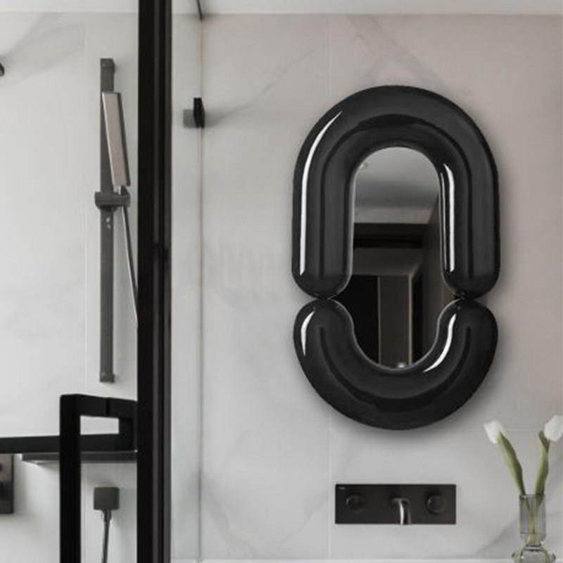 简约现代装饰镜壁挂化妆镜黑色艺术背景墙浴室镜LED灯镜 软装定制