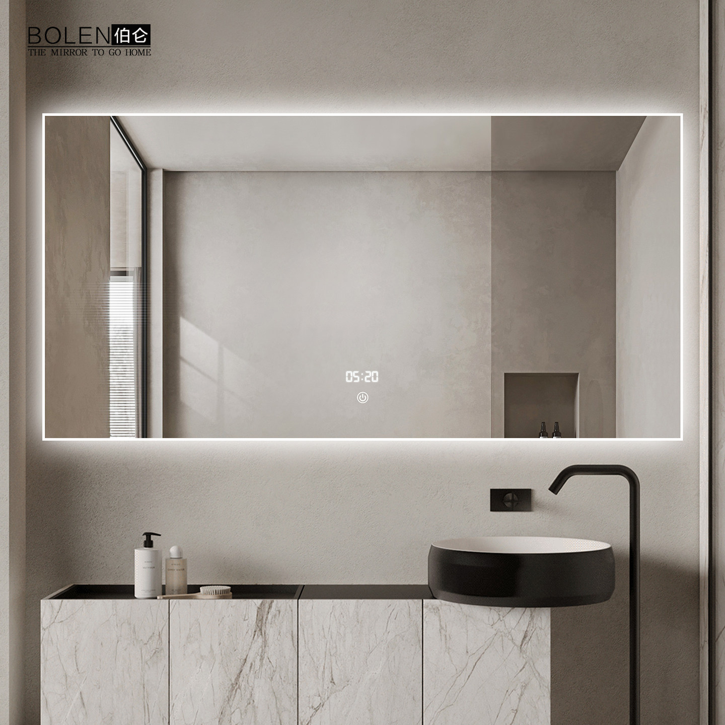BOLEN极简白色铝框智能浴室镜LED灯镜洗漱台卫生间双台盆卫浴镜子