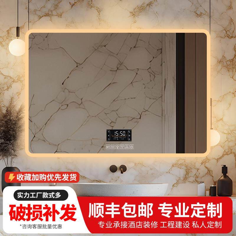 亚朵酒店智能浴室镜led灯铝合金边框卫生间防雾镜子洗手间壁挂式