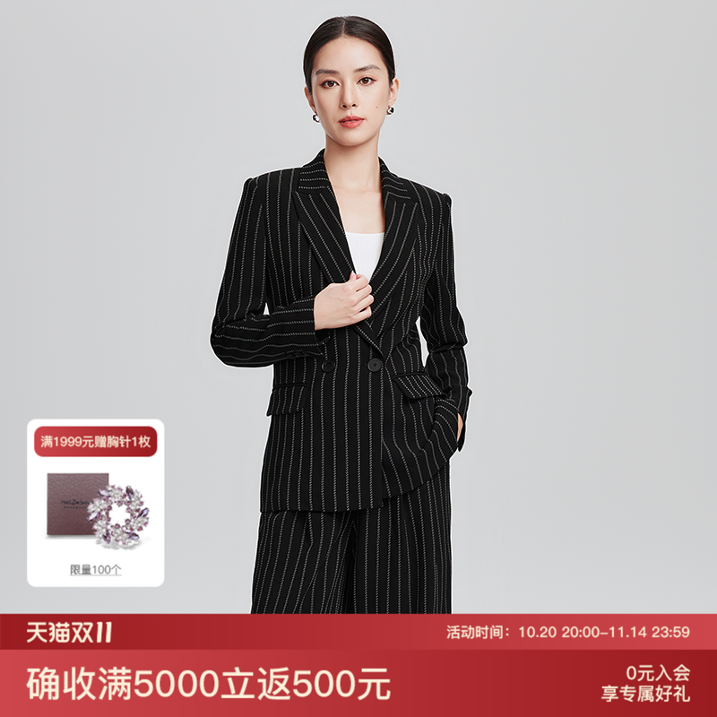 【醋酸】赢智尚西装正装女职业套装新款秋季黑色干练条纹西服外套