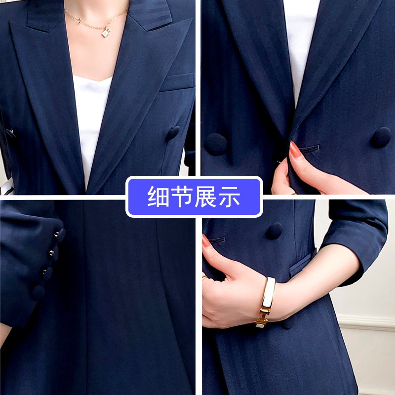 藏青条纹西装套装气质女神范西服正装职业售楼处酒店工作服女工装