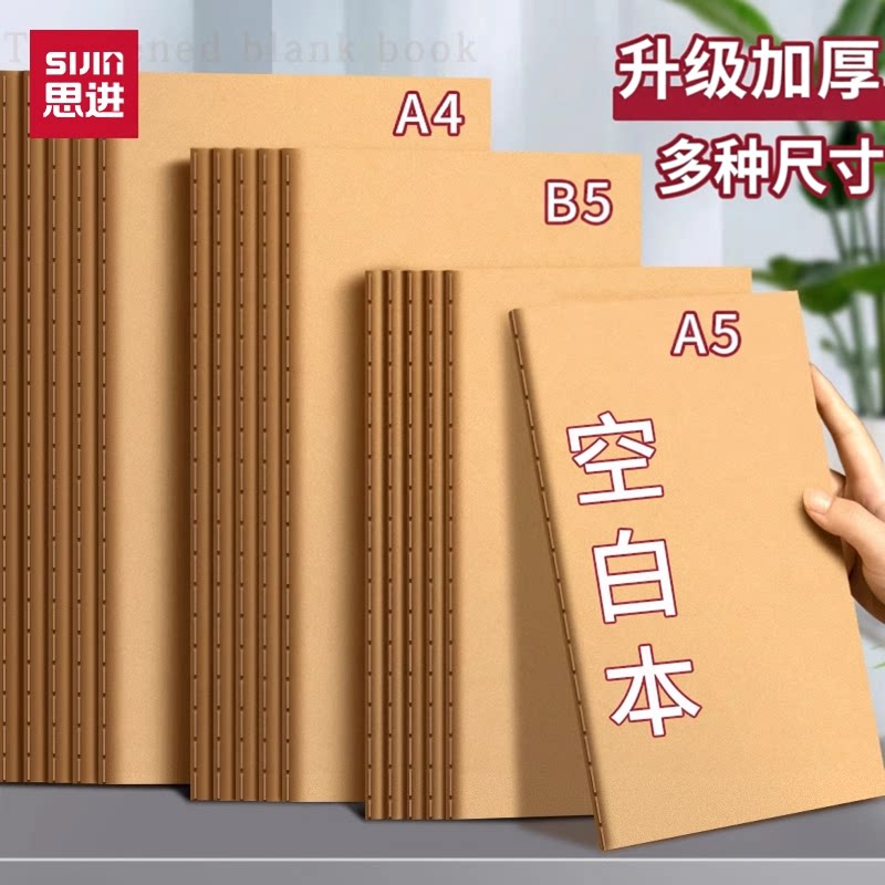 思进a4空白本牛皮纸笔记本子加厚b5空白内页本大学生考研思维导图绘图a5插画手绘美术画画本高中初中生作业本