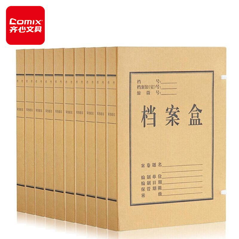 齐心档案盒10个装 30mm加厚纯浆牛皮纸 A4资料盒 办公文具AP-30