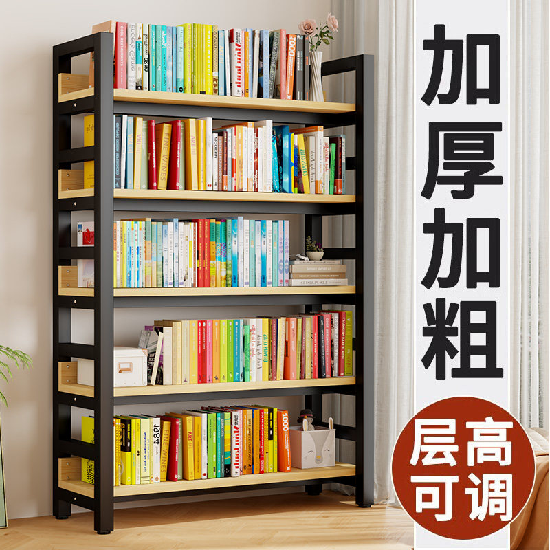 书架置物架落地家用铁艺多层收纳书柜小型简易钢木架子储物架书房