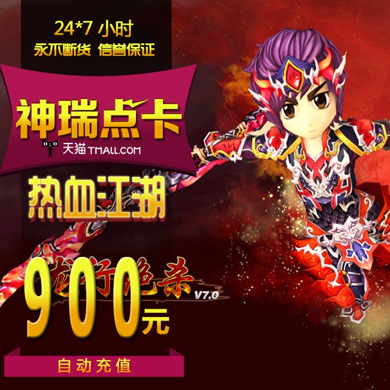 热血江湖点卡 热血江湖元宝充值300元 热血江湖7500元宝 自动充值