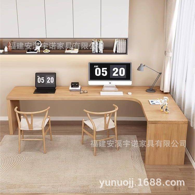 现代简约家用电脑桌 全实木办公转角书桌L型小户型学习写字电脑桌