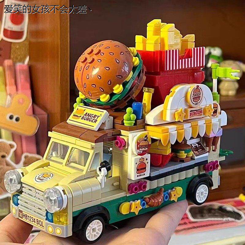 乐积木高城市街景汉堡车冰淇淋车女孩子益智拼装女生玩具礼物拼图