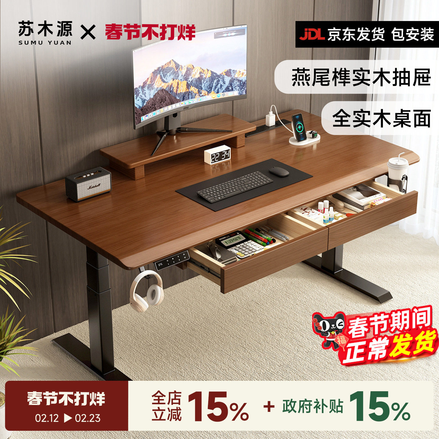实木书桌智能电动升降带抽屉电脑桌家用办公桌工作台学习桌电竞桌