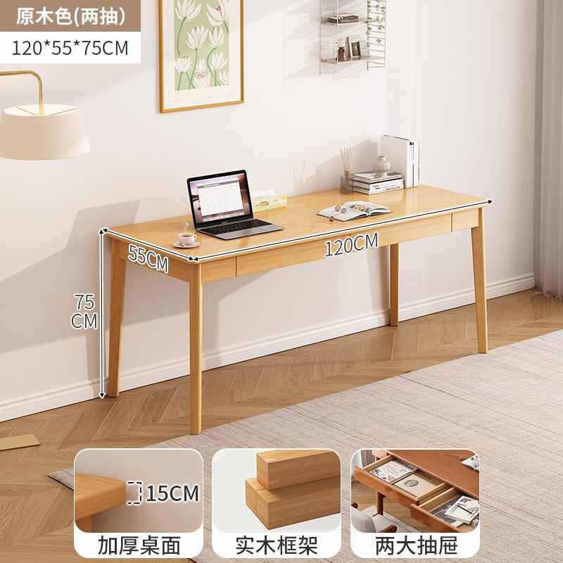 实木电脑桌带书桌现代长条桌双人家用抽屉工作台办公写字桌子简约