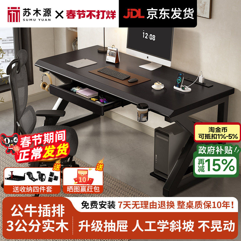 实木电脑桌带抽屉卧室家用学习桌简易书桌办公桌双人电竞桌工作台