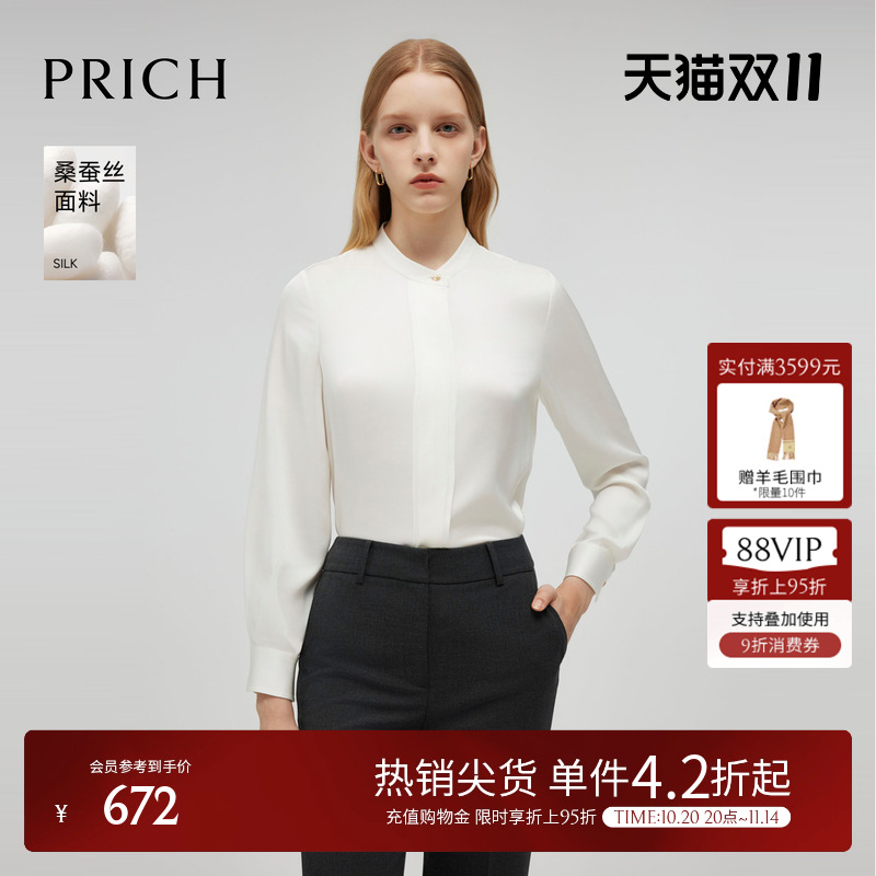 【真丝】PRICH简约小立领衬衫春秋新款长袖垂坠感通勤衬衣女