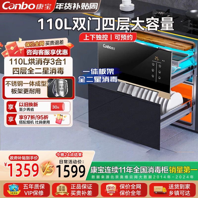 康宝嵌入式消毒柜家用大容量全二星高温消毒碗筷厨房XDZ110-E18B