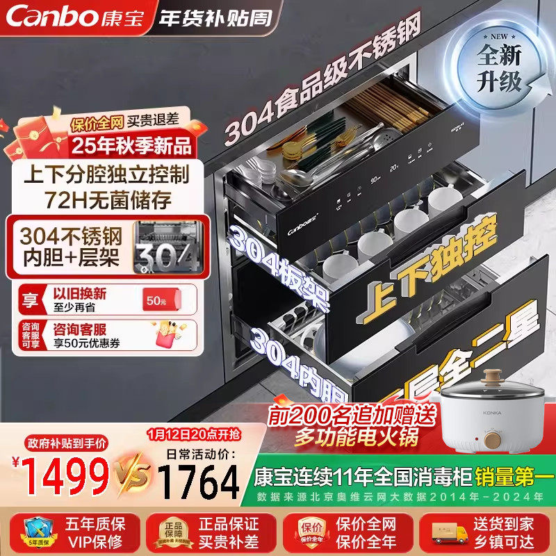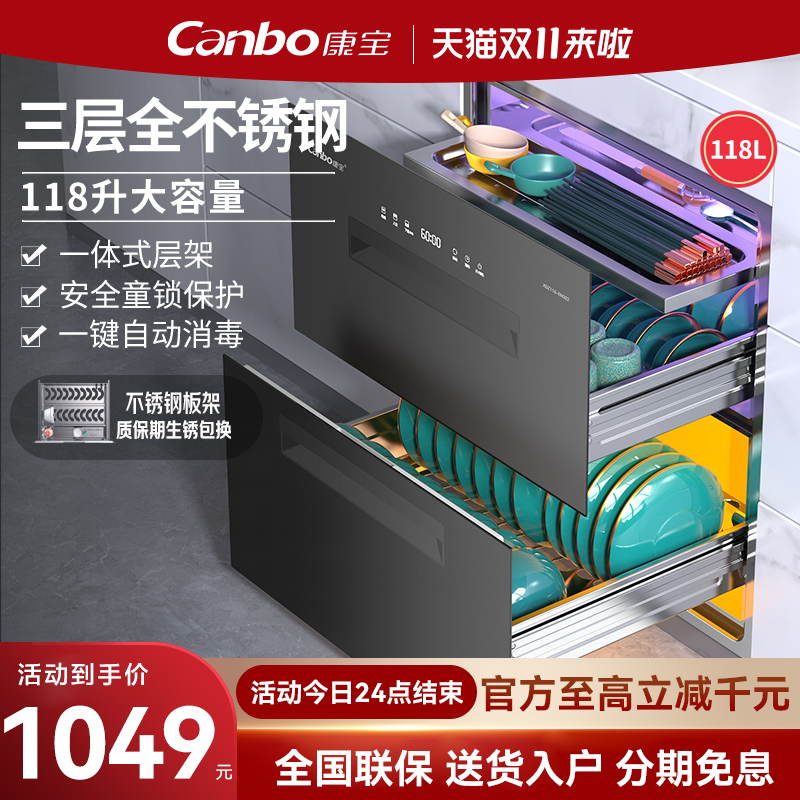 康宝嵌入式消毒柜家用三层304不锈钢碗筷消毒25年新款XDZ110-AE