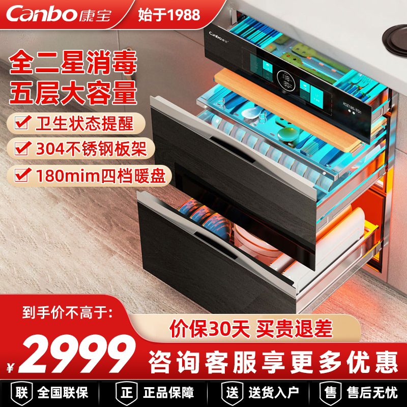 康宝磐石XDZ200-TQ1嵌入式消毒柜家用五层大容量304不锈钢二星级