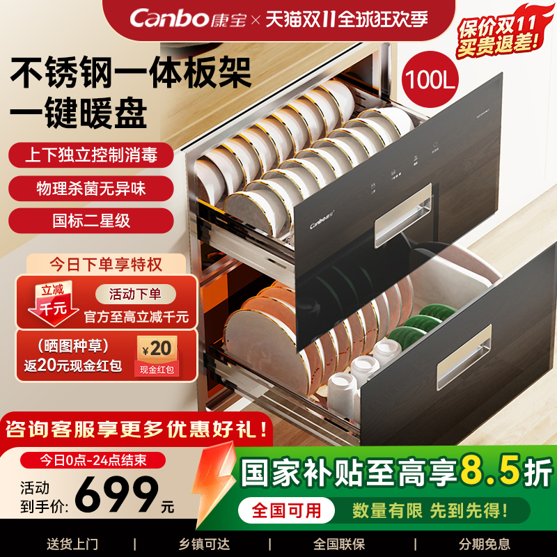 Canbo/康宝 XDZ110-ESV1嵌入式消毒柜家用三门二星不锈钢消毒碗柜