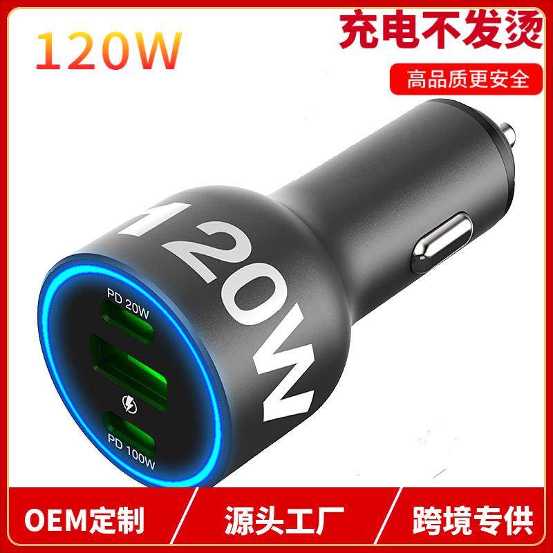 120W大功率车载充电器PD100W快充铝合金车充QC3.0汽车充电器