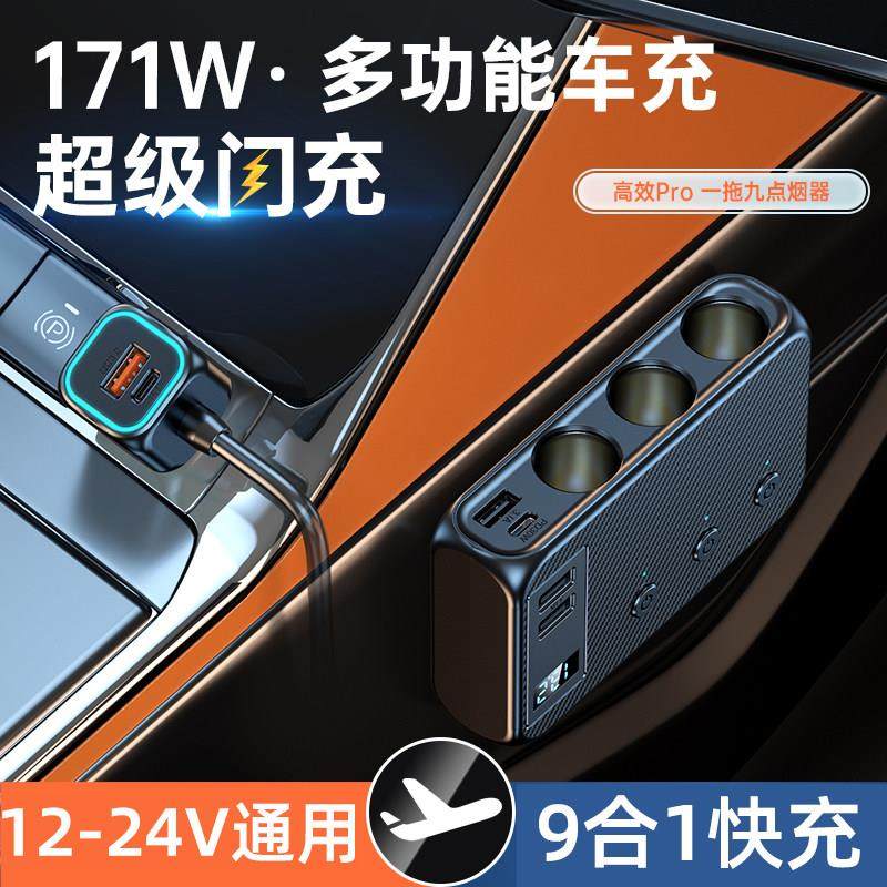 大功率车载充电器一拖三四快充汽车点烟器转换171W插座USB充电器