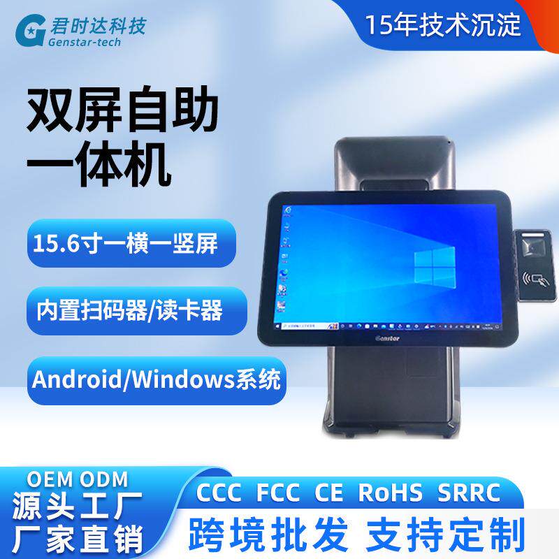 15.6寸双屏G1安卓一体机windows触摸扫码读卡打印自助收银一体机