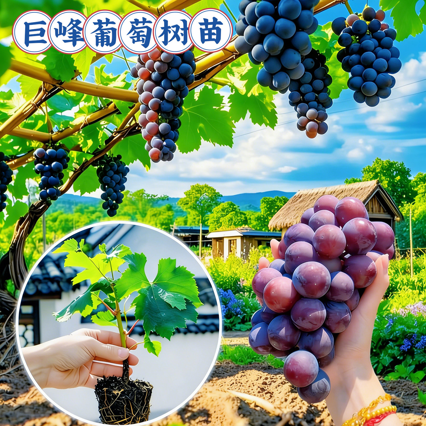 嫁接巨峰葡萄树苗当年结果南北方种植盆栽爬藤地栽蓝宝石阳光玫瑰