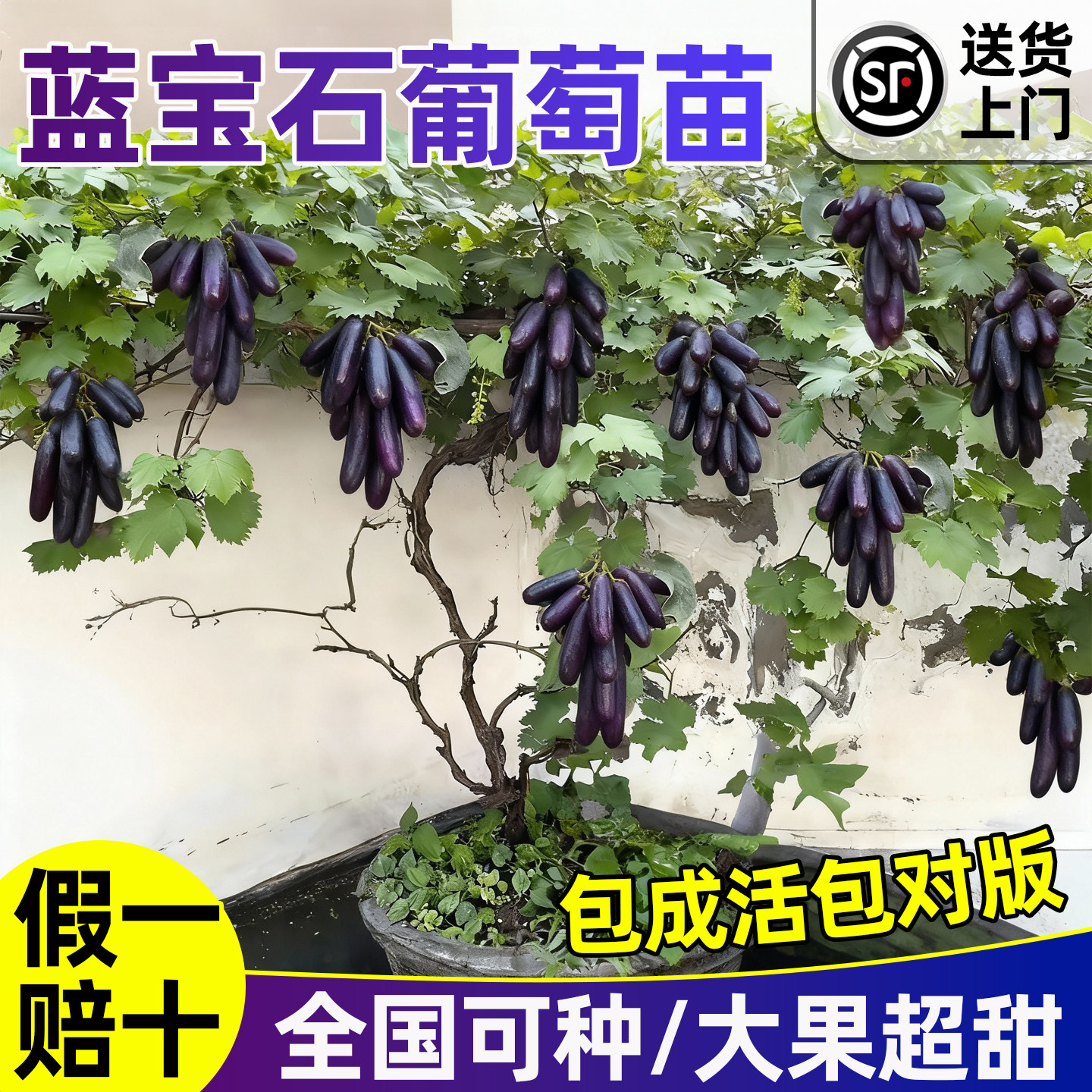 盆栽无籽蓝宝石葡萄树苗当年结果南北方庭院室内外种植爬藤包成活