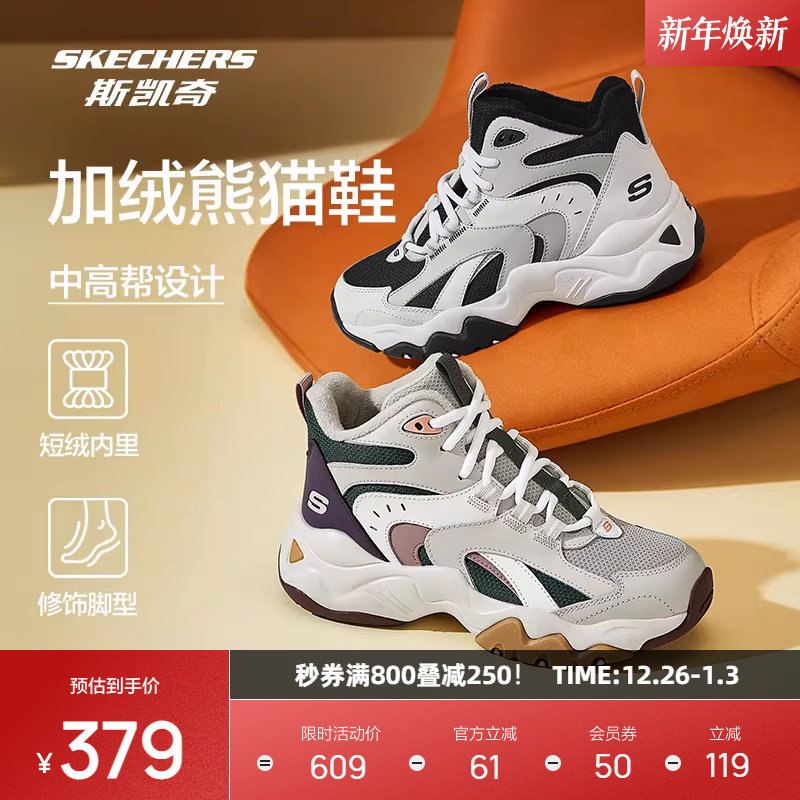 斯凯奇秋冬款女子加绒舒适保暖商场同款运动老爹鞋时尚高帮跑步鞋