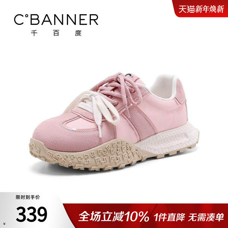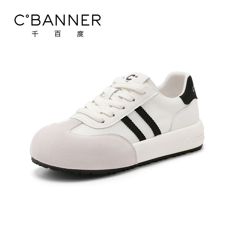 千百度休闲德训鞋女春季新款百搭厚底增高休闲鞋轻便舒适运动鞋女