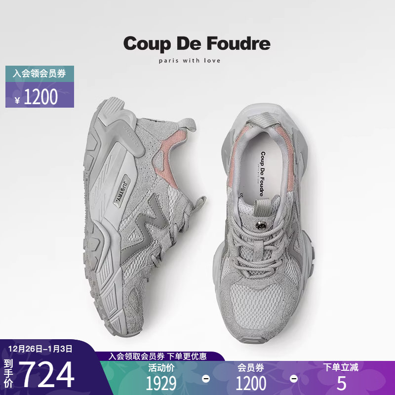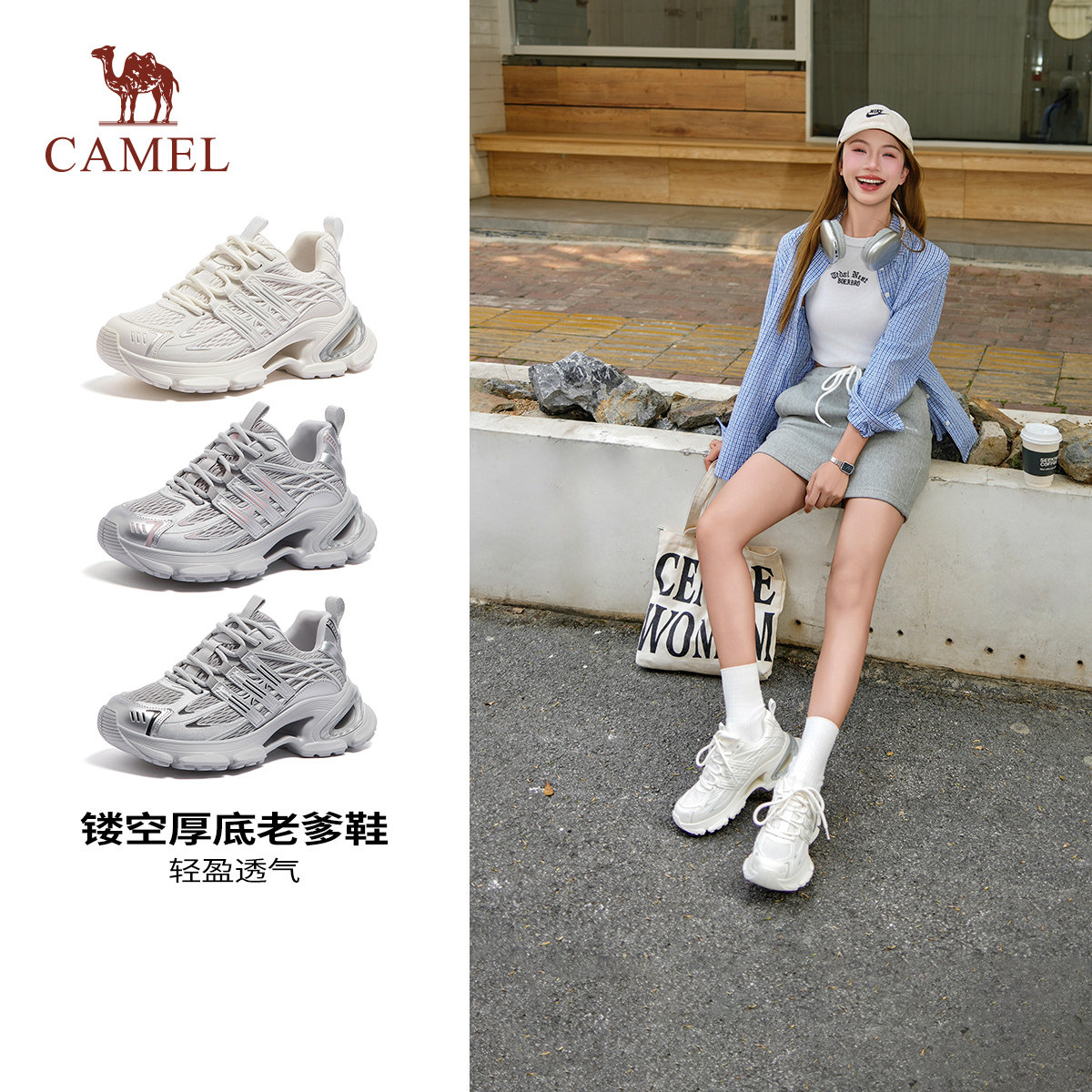 CDF轻奢秋季潮流老爹鞋新款真皮增高厚底休闲网纱舒适运动鞋女款