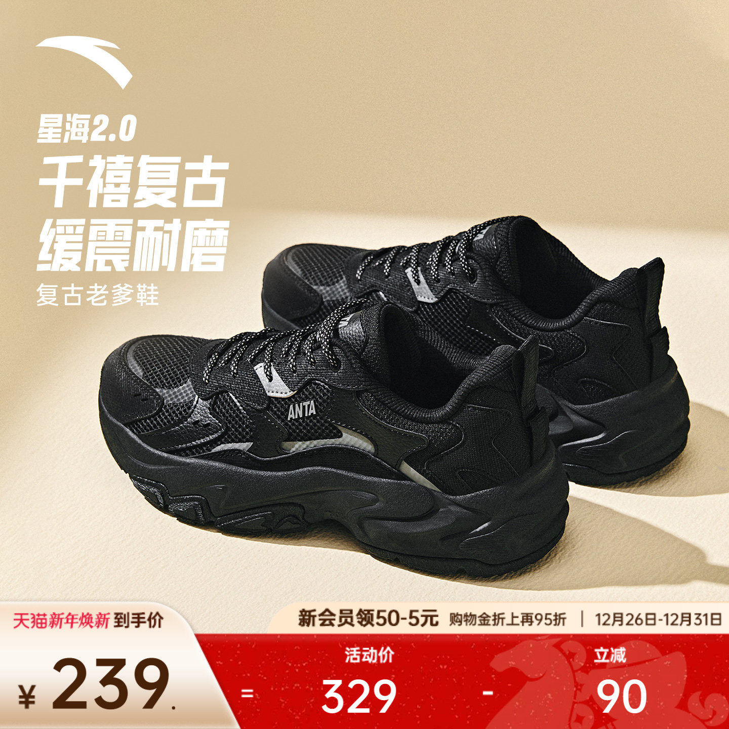 安踏星海 2.0丨厚底舒适老爹鞋女2025冬季新款黑色休闲鞋运动鞋子