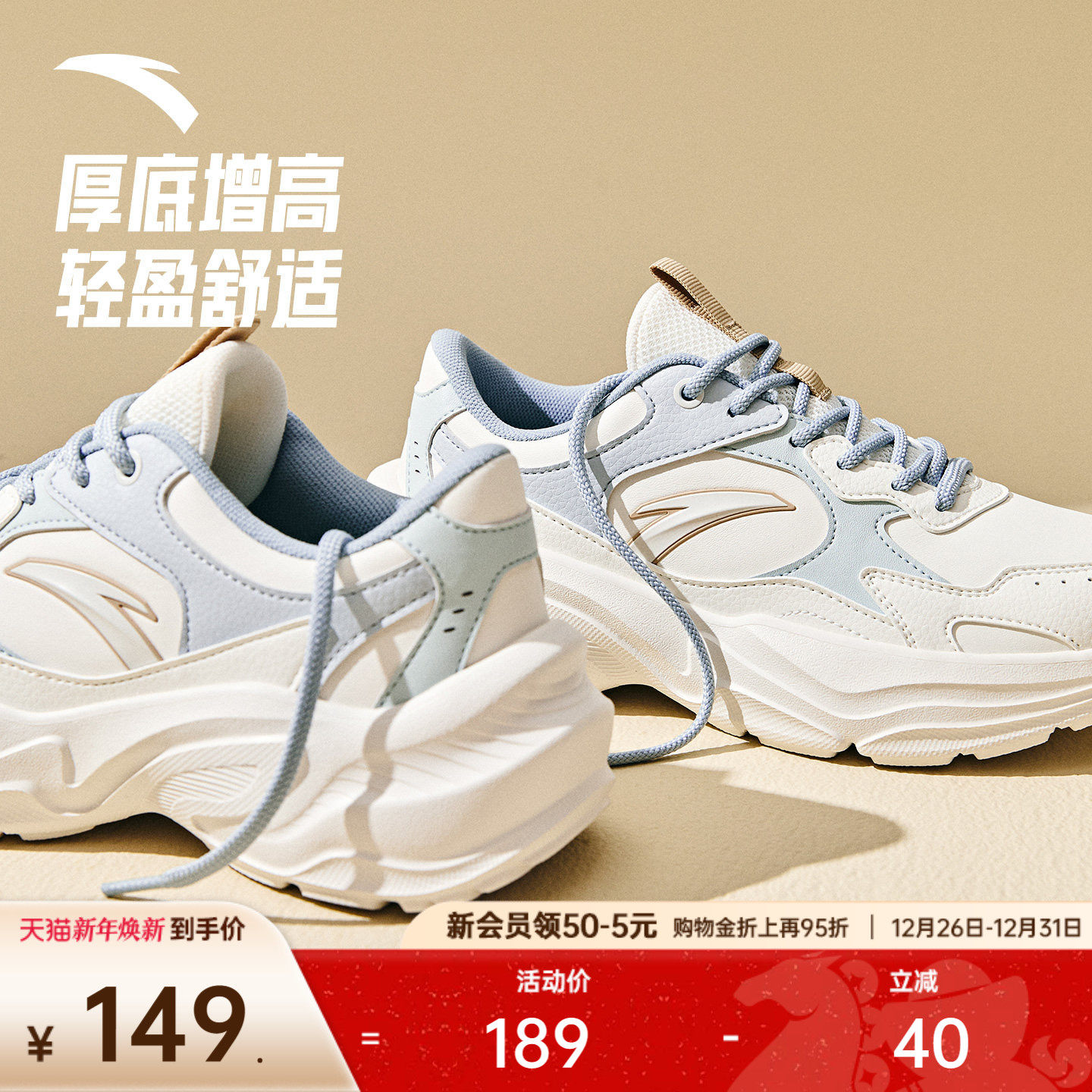 安踏革网拼接复古休闲鞋女冬季舒适潮流运动鞋子百搭白色通勤女鞋