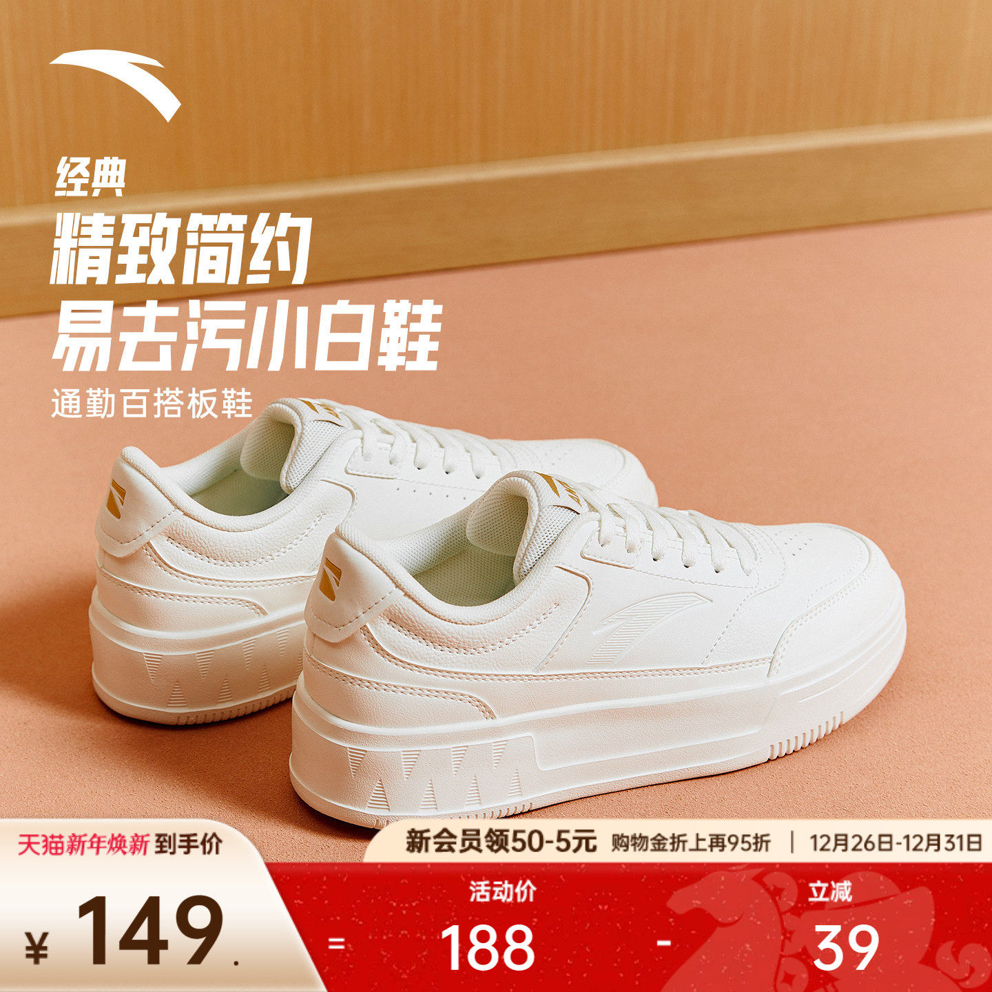 安踏板鞋女冬季轻便厚底小白鞋女款运动鞋百搭舒适休闲鞋潮流女鞋