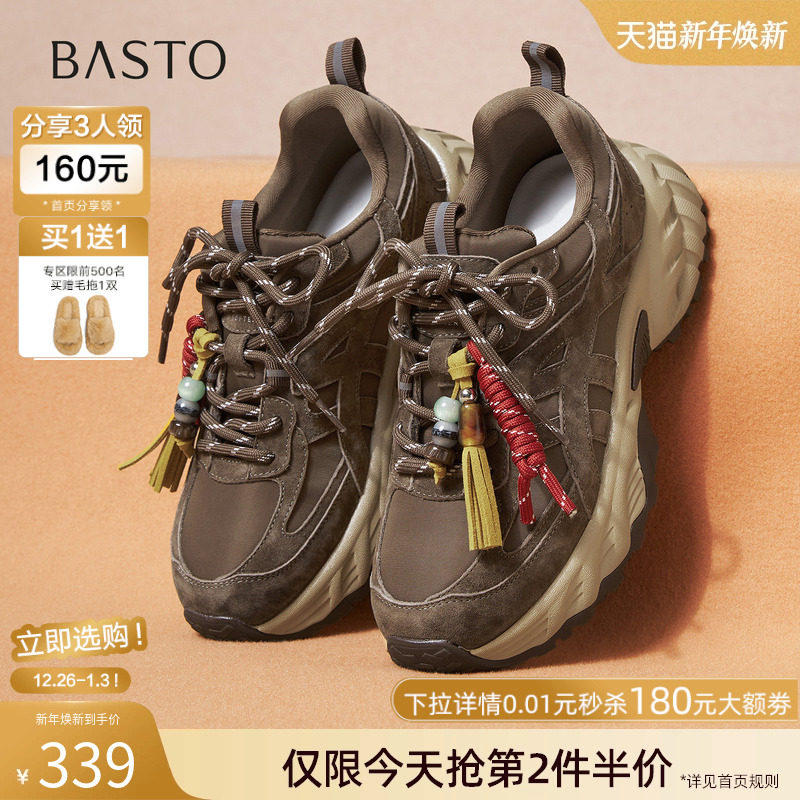 百思图2026春季新款厚底增高老爹鞋舒适运动鞋女休闲鞋D3782AM6