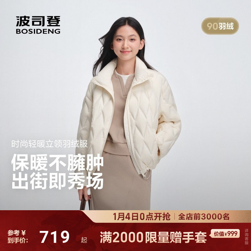 【鹅绒】波司登奥莱女潮流时尚立领收腰显瘦轻薄羽绒服百搭短外套