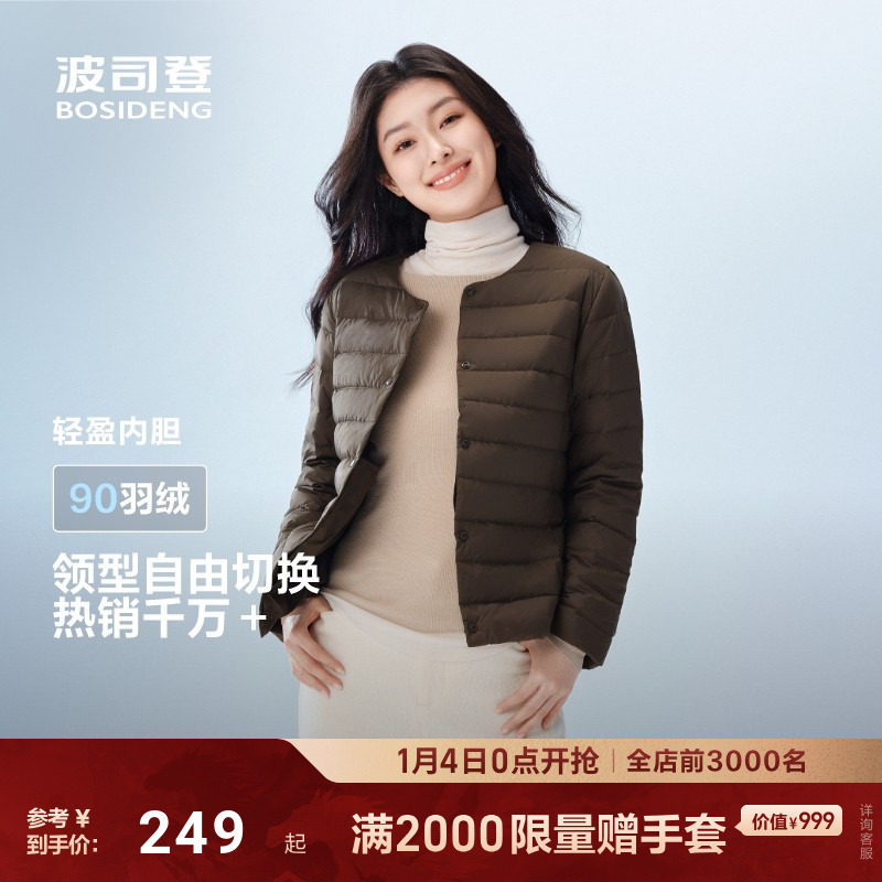 90绒|波司登2025新款女轻暖便携羽绒服内胆圆领V领可露丽轻薄外套