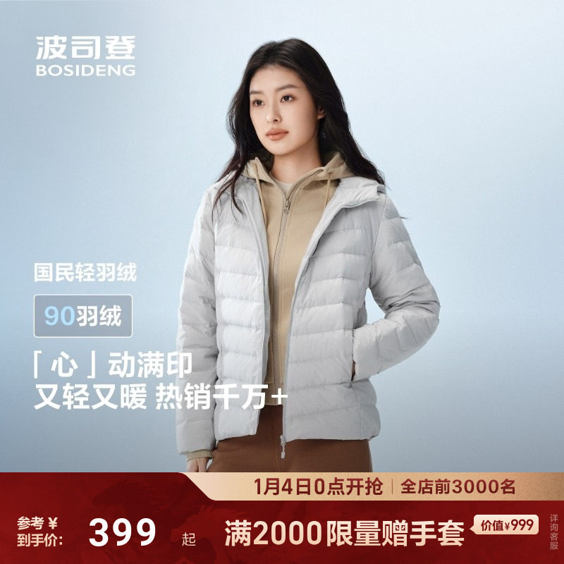 排骨羽绒服|波司登25新款连帽轻薄90绒女三防不钻绒便携时尚外套