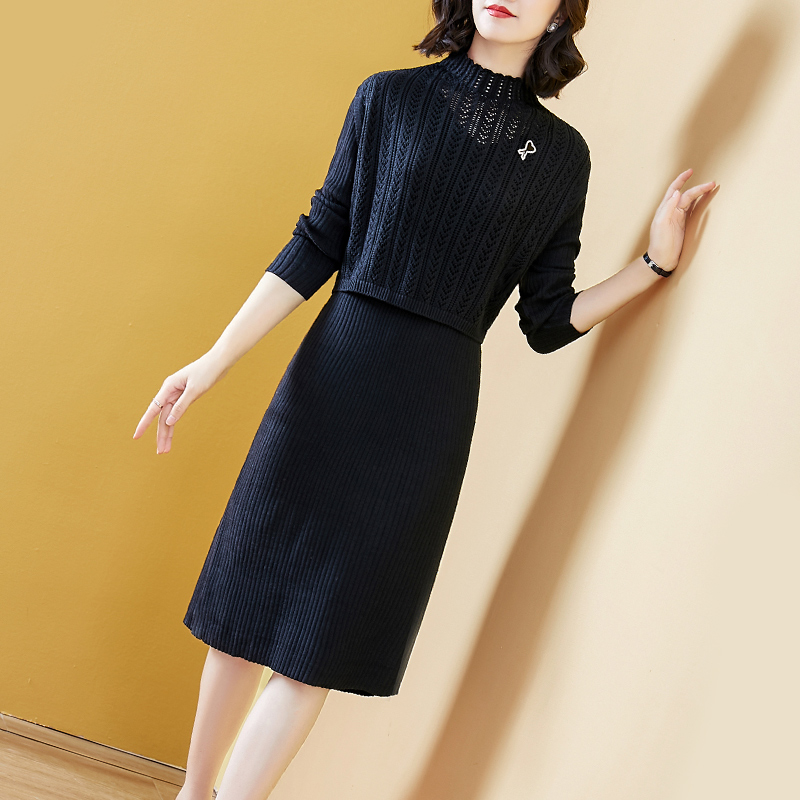 高端连衣裙奢华大牌纯色秋装女2025新款针织内搭显瘦遮肚子两件套