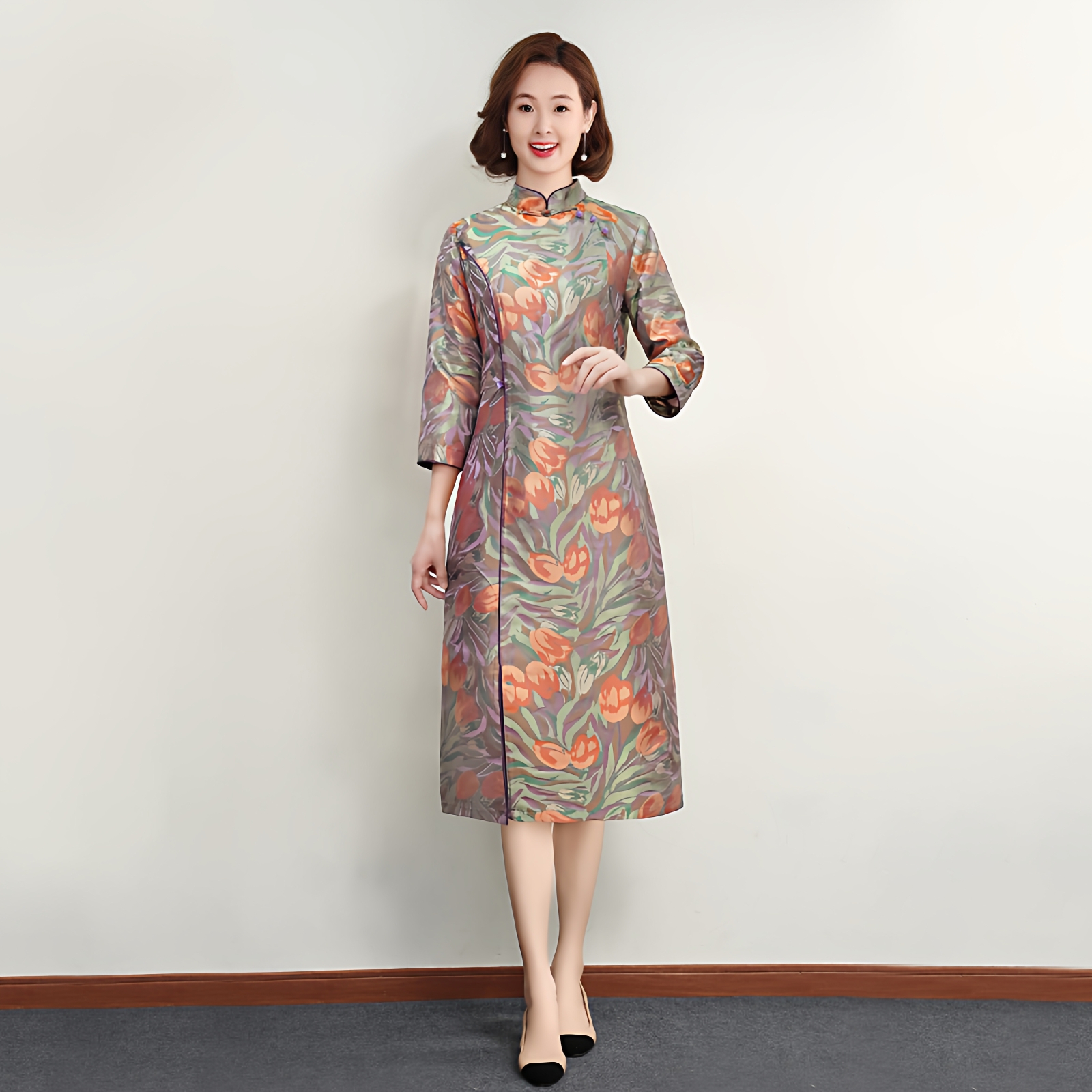真丝香云纱秋季连衣裙2025女气质高端奢华大牌妈妈早秋改良旗袍裙
