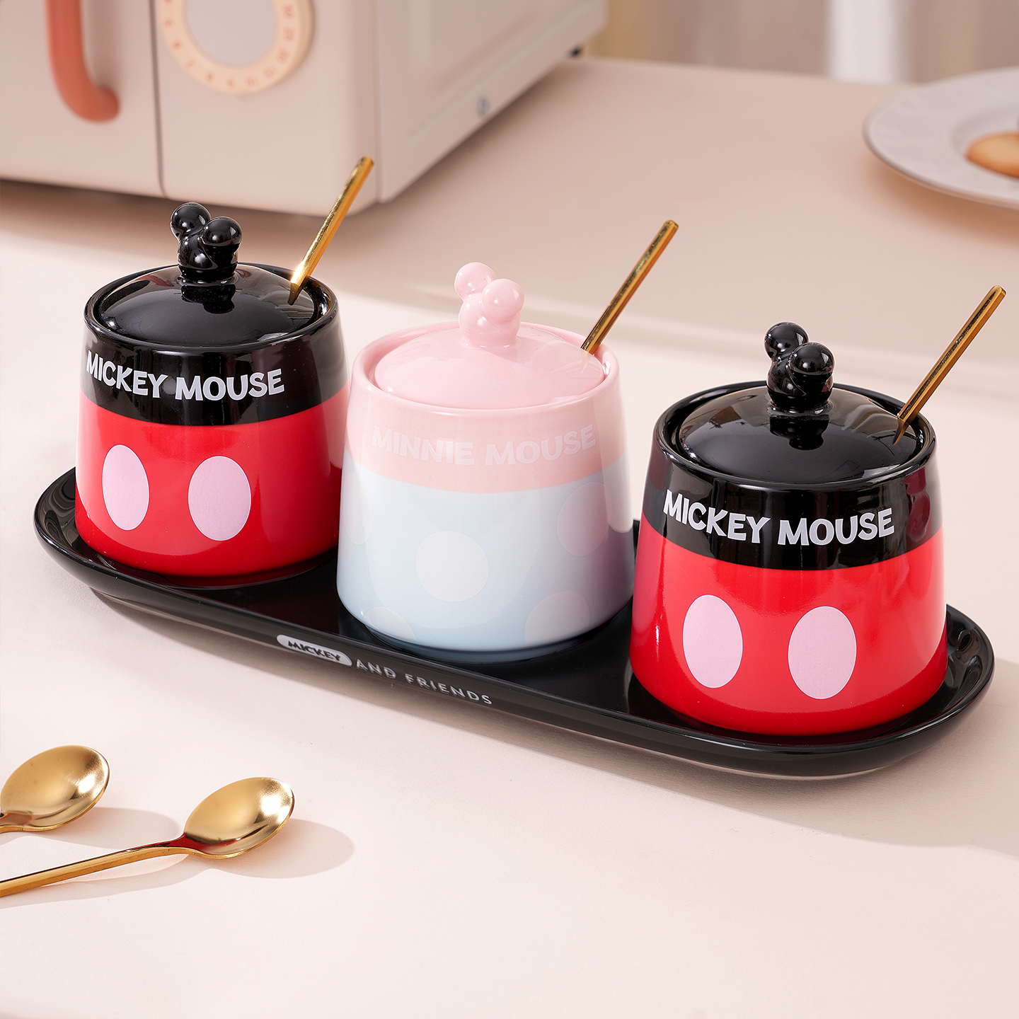 迪士尼米奇陶瓷调味罐调料瓶盐罐厨房家用高端组合套装带盖带勺子