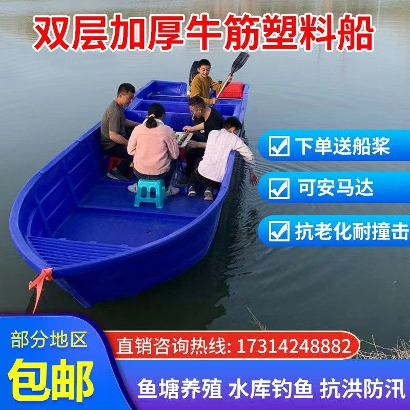 双层牛筋塑料船渔船加厚PE冲锋舟养殖捕鱼小船橡皮艇钓鱼船船外机