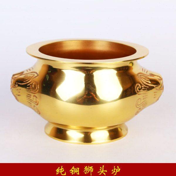 纯铜佛具 狮头供炉宣德香炉 纯铜立香炉线香炉净炉 双狮头香炉