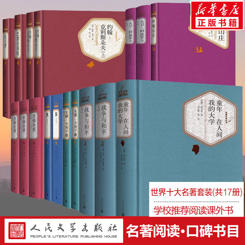 世界十大名著全套精装 人民文学出版社 精装版 全17册 巴黎圣母院飘战争与和平童年呼啸山庄悲惨世界外国文学小说书籍课外阅读
