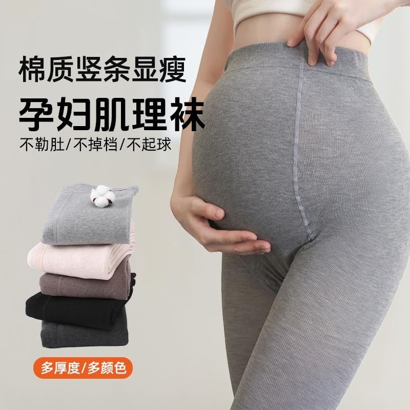 孕妇打底裤外穿春秋款棉质加绒保暖冬季托腹连裤袜踩脚条纹不掉档