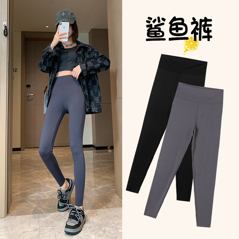 鲨鱼皮打底裤外穿春夏2025年新款高腰收腹提臀九分大码瑜伽休闲裤