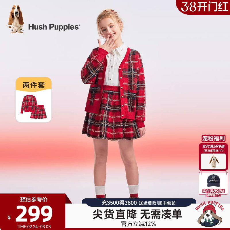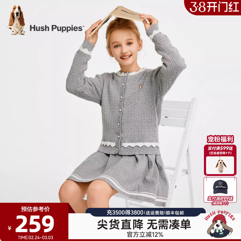 暇步士童装女童毛衣套装25冬新款儿童针织开衫半身裙两件套拜年服