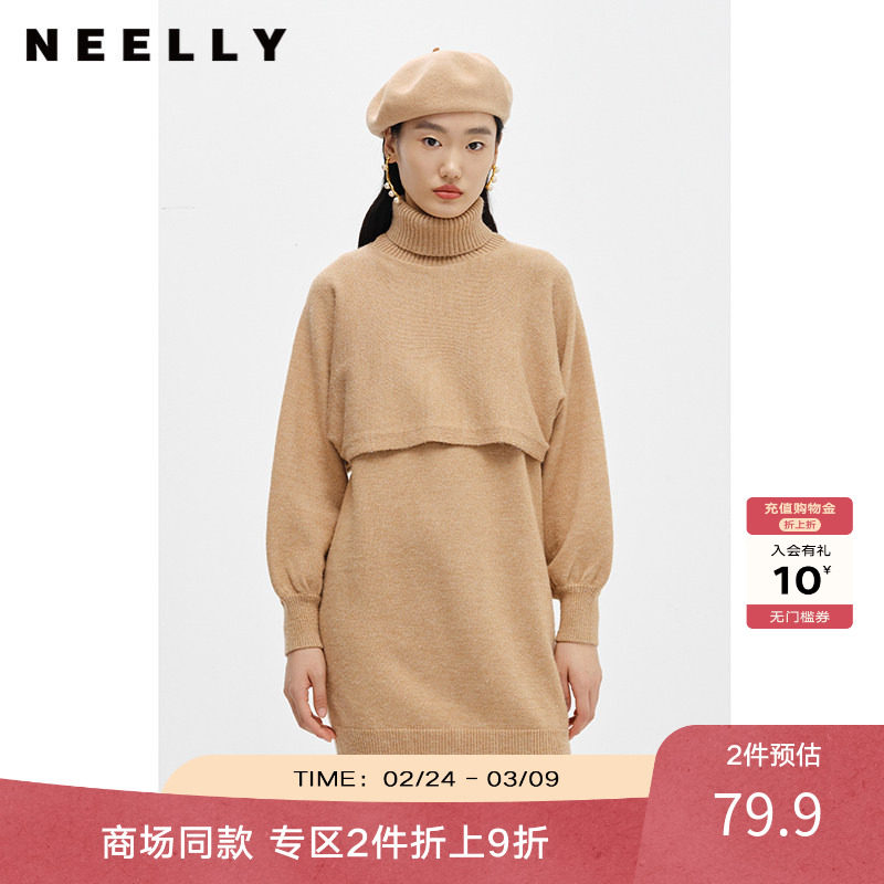NEELLY纳俪商场同款冬季新款高领毛衣女时尚套装两件套连衣裙高级