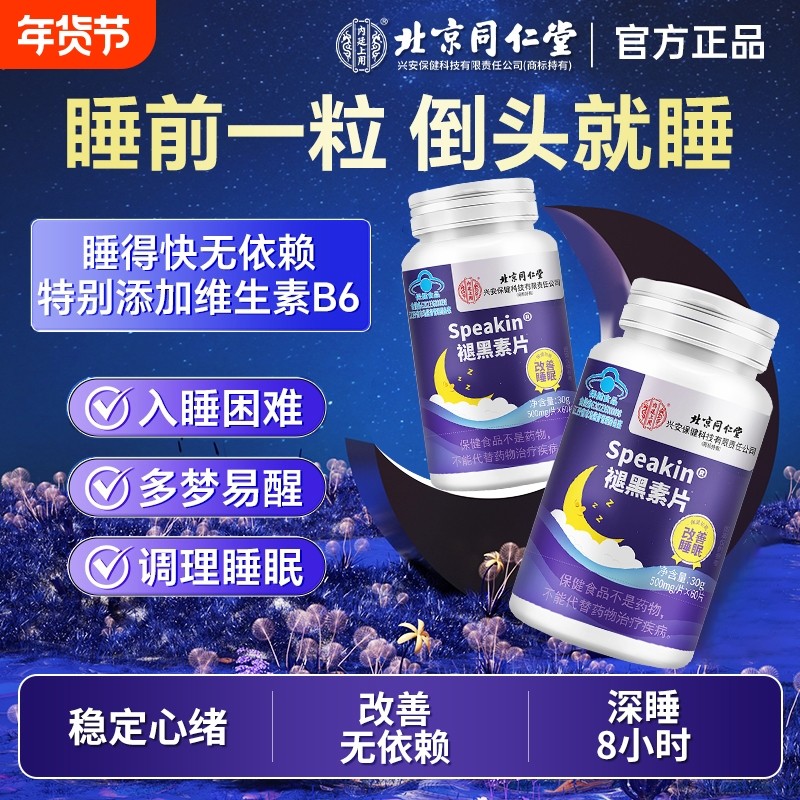 北京同仁堂褪黑素安瓶助眠学生上班族改善失眠多梦维生素b6睡眠片